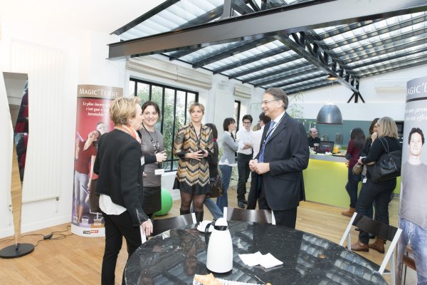 Nous visitons rapidement les lieux, un grand loft très ouvert avec de beaux espaces ! Pour ce type d’évènement, TOUPRET a fait mouche, le cadre est magnifique. Au rez-de-chaussé, un espace est prévu pour organiser l’atelier de test des produits tandis qu’à l’étage, de grands fauteuils nous attendent pour la conférence de Presse.