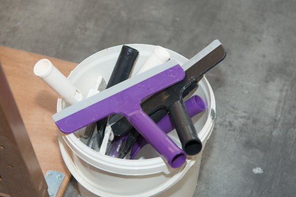 La raclette noire permettant de répartir et égaliser la matière à l’aide de sa lame souple et crantée