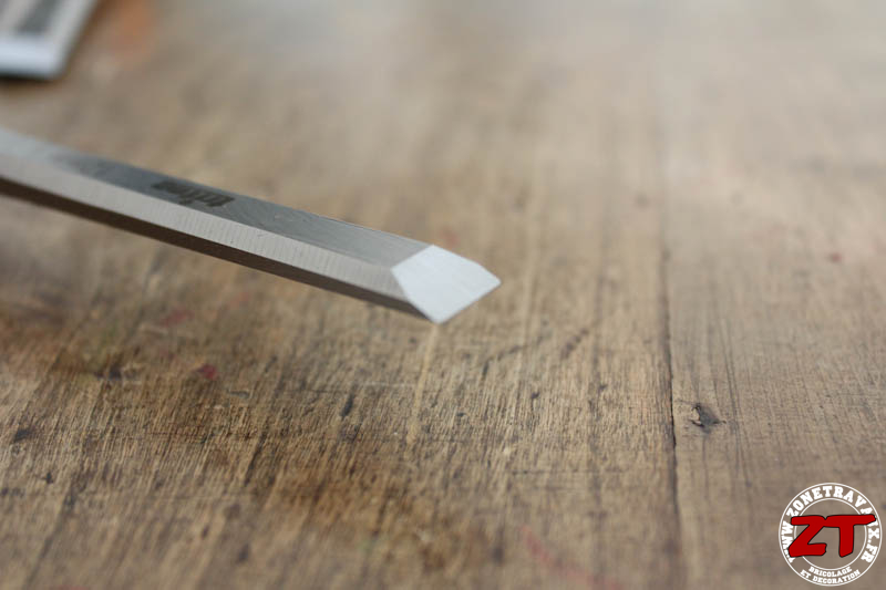Chaque ciseau est fourni avec un protège lame … que l’on ne gardera surement pas bien longtemps mais qui peut s’avérer sécurisant pour éviter les coupures, notamment avec le ciseau de 6mm si vous ne le rangez pas dans l’étui. (Vous savez quand on fouille dans la caisse pour chercher l’outil qui va bien).