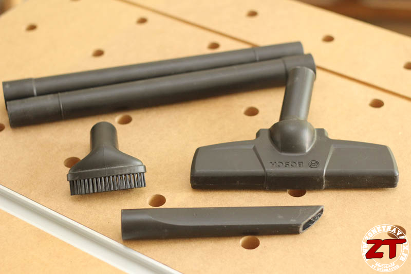 Il est livré avec des accessoires pour en faire un aspirateur polyvalent : Un suceur long, une brosse à poils, une brosse de sol (classique) et des tubes de rallonge.