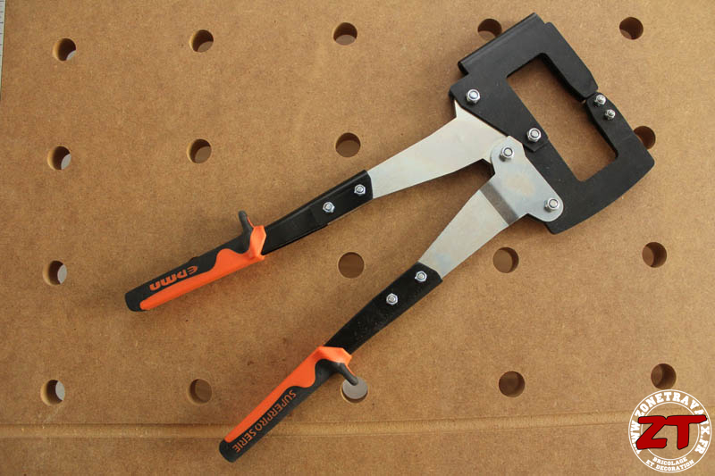 Puis on comprend que cela facilite l’installation de la pince pour sertir les montants tout en réduisant l’encombrement de celle-ci :