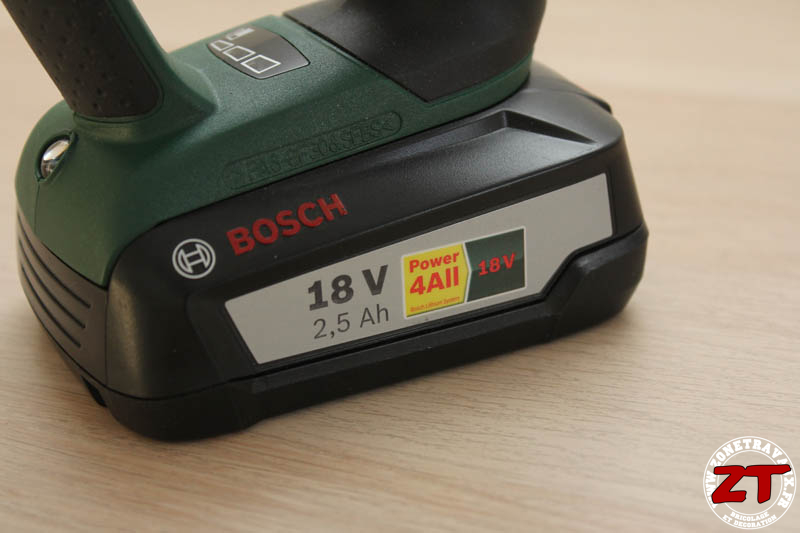 La batterie est en 18V et intègre le programme PowerForAll 18V qui permet une compatibilité avec les différents outils de cette même gamme. Elle est ici en 2,5 Ah pour offrir une autonomie largement suffisante pour un usage non professionnel.