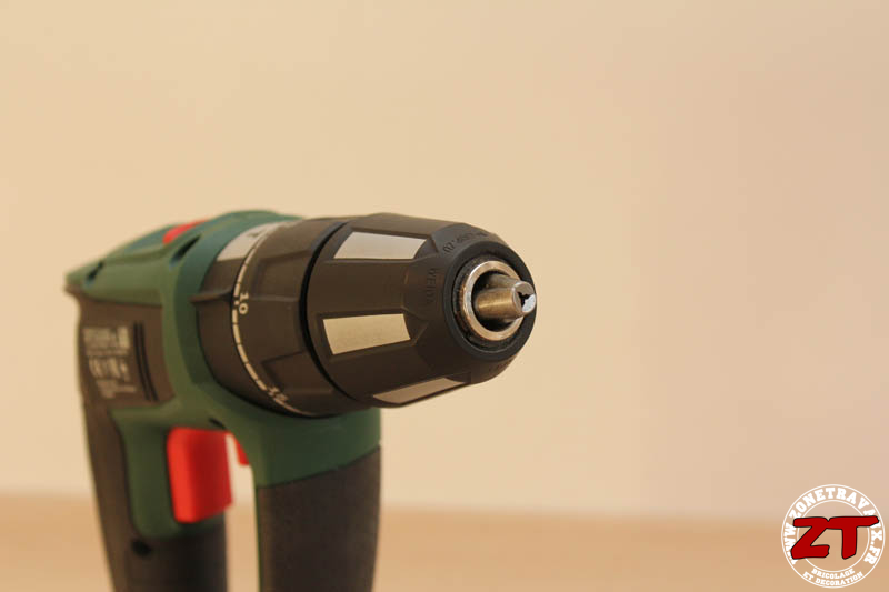 A l’avant, on retrouve le mandrin automatique (on le serre à la main) de 13mm, ce qui est très très pratique comparé aux mandrins de 10mm parfois trop justes pour certaines taches :