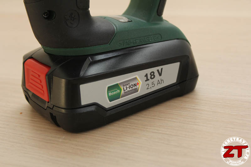 La batterie est en 18V et intègre le programme PowerForAll 18V qui permet une compatibilité avec les différents outils de cette même gamme. Elle est ici en 2,5 Ah pour offrir une autonomie largement suffisante pour un usage non professionnel.