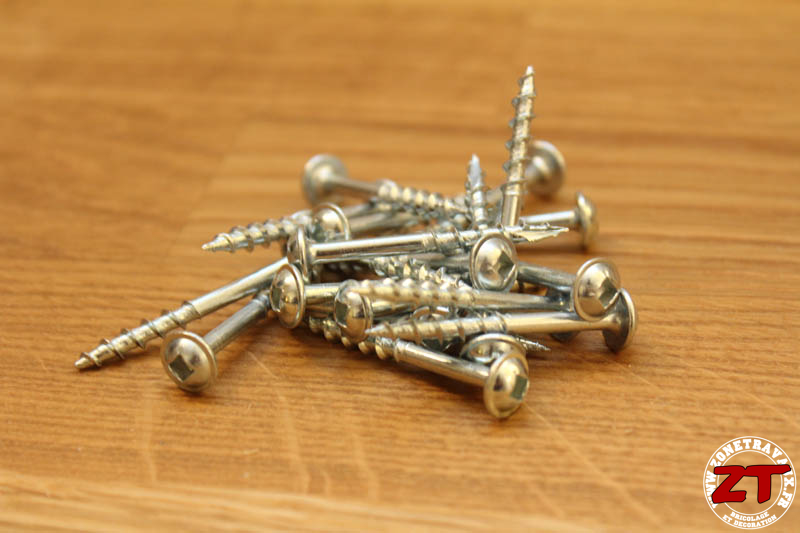 Il est bien entendu possible de faire ses assemblages avec des vis à bois normales mais sachez que TRITON fournit (via les sites revendeurs comme amazon) différents types de vis avec embout de vissage carré ainsi que différentes essences de bois pour les chevilles (chêne et pin).