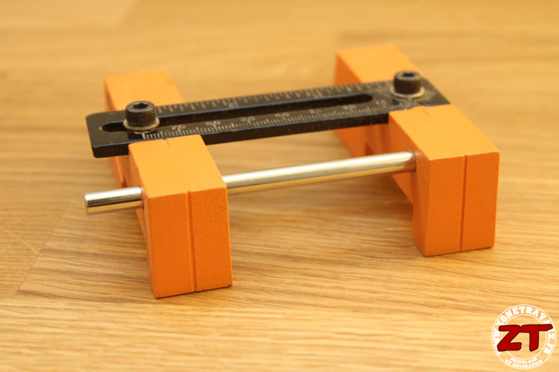Le modèle TWAJ est lui un peu différent des deux premiers. C’est aussi un gabarit de perçage oblique double mais avec la possibilité cette fois de faire un réglage de l’écartement entre les deux trous à percer. Le but étant d’avoir un écartement précis et adapté au travail demandé, typiquement, lorsque l’on assemble un cadre ou des tiroirs de meuble.