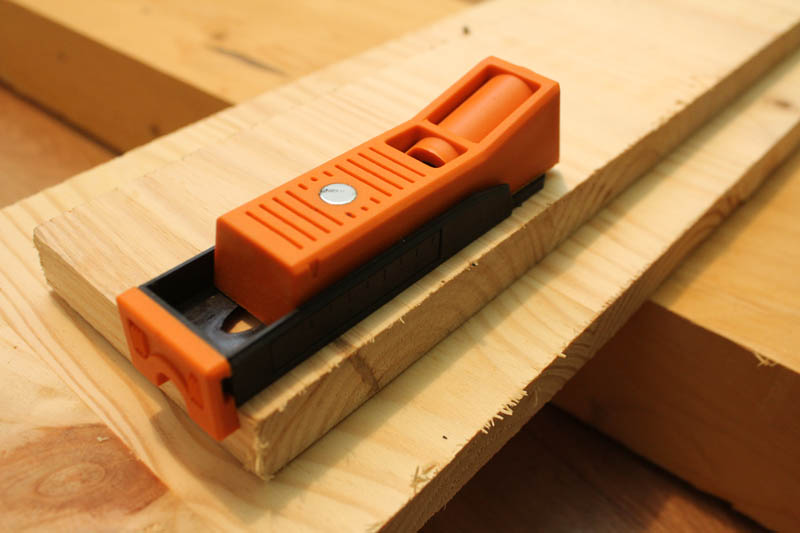 Pour l’utiliser, on positionne notre gabarit sur l’une des planches à assembler :