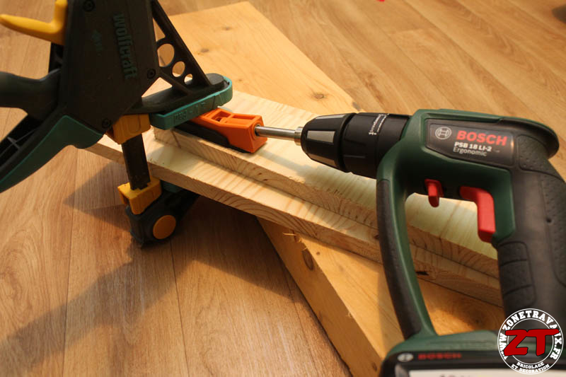 On assemble nos planches à l’aide d’une vis. Il faut faire attention à utiliser les vis avec une dimension adaptée au risque d’avoir une vis qui traverse la planche :