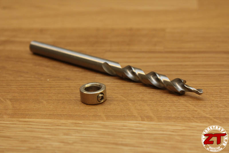 Une bague de profondeur qui viendra buter sur l’insert en acier du gabarit une fois la bonne profondeur atteinte :